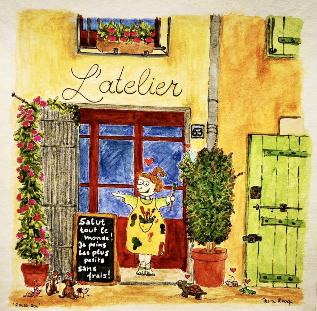 Atelier – Galerie, so gesehen im schönen Bergdorf Goult. Habt alle einen magischen Tag und macht nur noch, was Euch glücklich macht. Alles andere macht ja keinen Sinn ❤️ Aquarell aus meiner Reihe „Provence-Liebe“, Nummer 12. Goult, Provence-Alpes-Côte d’Azur 😍